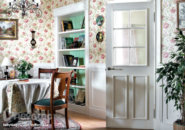 у моей мамы в доме обои типо первой картинки,в комнате,только чуть чуть другово оттенка!смотрятся просто потрясающе!нету ощущения ретро,есть ощущение романтики) мебель кремовая и белая правда,персиковые шторы и диван в тему
