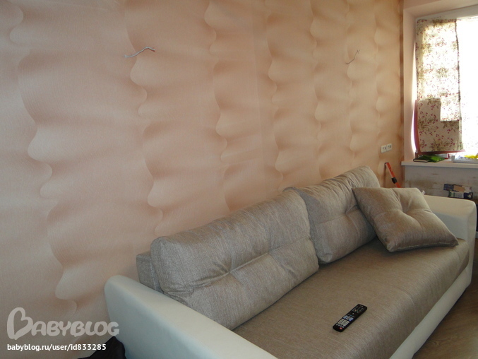 Декор окон. Текстиль. Жалюзи.Не могу пока представить какие рулонные жалюзи а именно по цветовому решению подойдут к персиковым обоям, с учетом что планируется по мимо них повесить нитяные шторы, какие цвета можно с гармонировать между собой? В моем представлении пока остаются нитяные -нежно фиолетового цвета, но пока не решила окончательно.Мебель светлая.