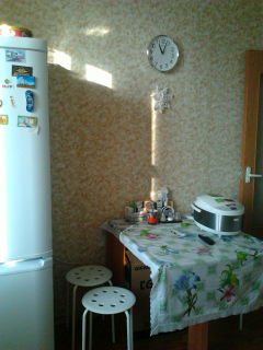 Наверно никуда не получится, там самый укромный уголок. Двери на балкон холод-к не мешает...Возле плиты он не влезет, а если поставить у свободной стены, то при входе скорей всего мешаться будет...