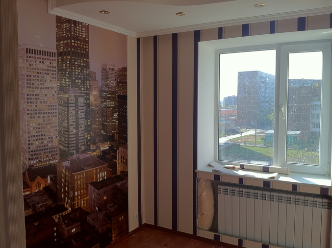 Прошло пару дней после оклеивания стен, обои приняли другой вид