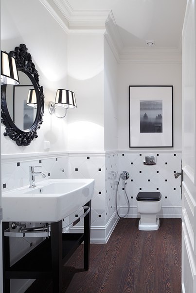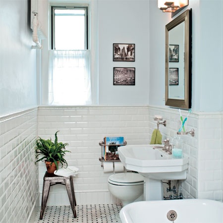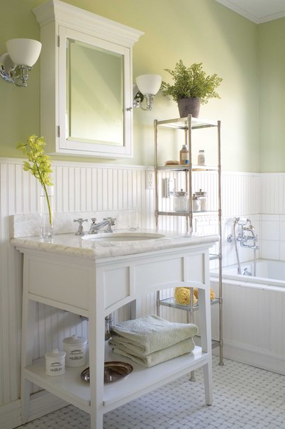Интерьерное решение ванной комнатыНакидайте пжл красивых картинок, где плитка в ванной не до потолка или зонирована - возле ванной, умывальника. Раньше всё время попадались красивые примеры, сейчас ничего найти не могу! Очень надо!