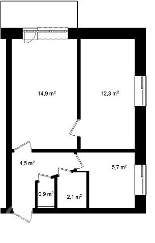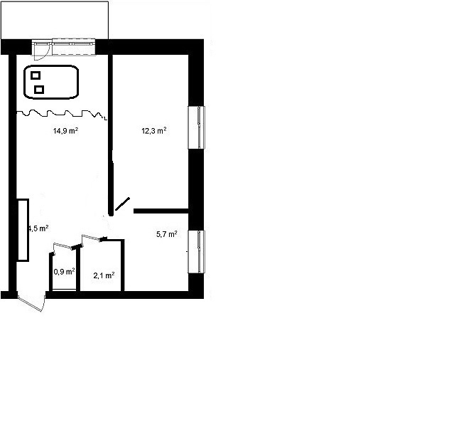 у моей тети такая квартира, она перенесла стену между кухней и маленькой комнатой к окну(увеличила кухню, а из маленькой комнаты сделала спальню себе.