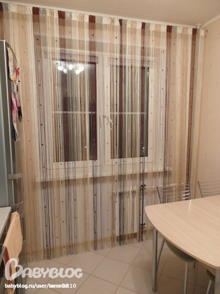 Мне кажется, что нитяные шторы к выбранной кухне не подходят по стилю.