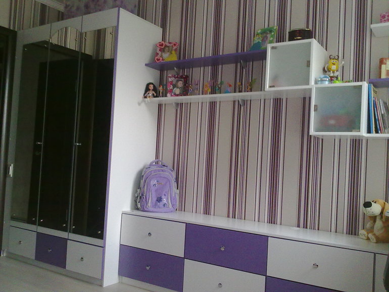здравствуйте. у вас комната практически такая же как наша :)вот ссылочкая решила делат белую мебель, вот что получилось, фотки с телефона плохого качества, когда доделаю шторы выложу красивые фото. Шторы делаю легкие: белая вуаль, немного драпировки из сиреневой вуали, и одна партьера у кровати в тон к диванчику, на окнах рулонные шторы