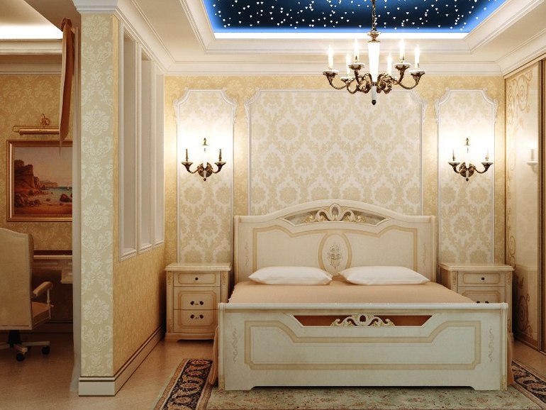 У вас кровать будет с мягким надголовником? Тогда можно в ваши места нечто похожее соорудить т. е мягкие панели из кожи-сейчас большой выбор иск.кожи.Навроде таких