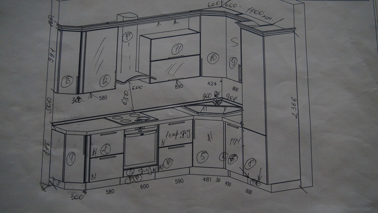 расположение почти как у меня в кухне, раковина у меня расположена не на углу, а по правой короткой стороне, очень удобно... а у вас как-то вообще не понятно немного...