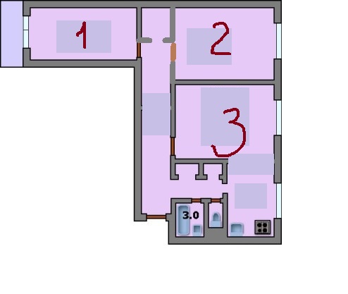 Прям как у нас, квартира, конечно малюсенькая. Кухня есть в дневнике, мы от туда убрали холодильник, в коридоре, как заходишь прямо сделали гардеробную-кладовку, туда впихнули холодильник, т.е. большую комнату изолировали, у нас правда две детские, а большая наша. Стиралку поставили в ванную, а саму ванну развернули, ремонт влетел в хорошую копеечку, особенно ванная и туалет.