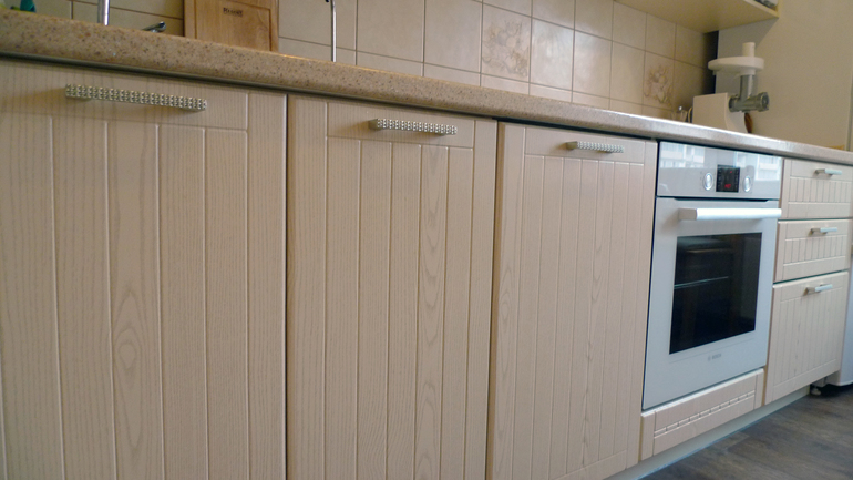 у нас в старой квартире была светлая пленка, довольно шершавенькая) оттиралась отлично, и еще нужно заметить, что кухня была до безобразия дешевая, так как жилье это было временное, выбирали САМУЮ дешевую мебель, 3 метра обошлись в 27 тыс))) шкафы как новые остались, а вот столешница (венге) вся в царапинах была уже через пару месяцев.