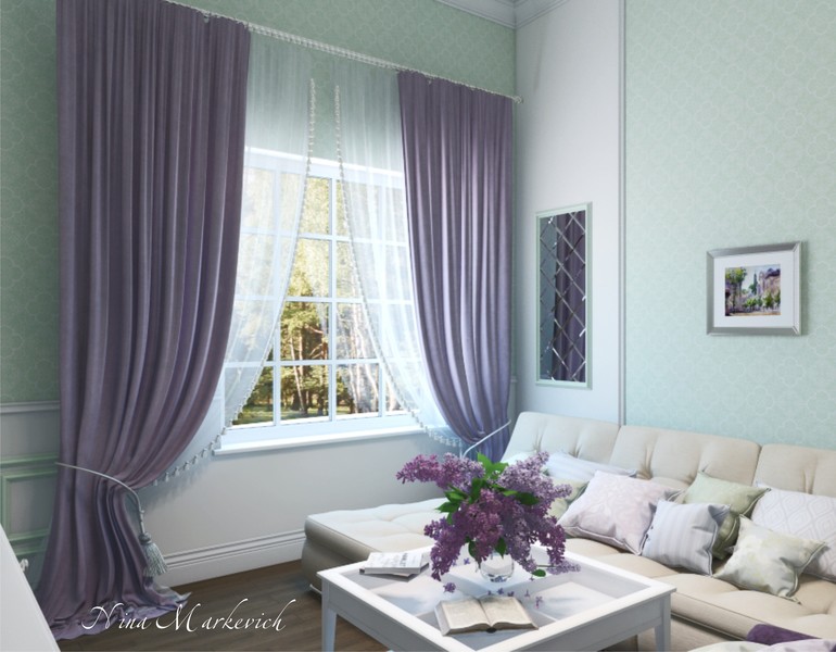 У родителей в новой квартире все по минимуму- на окнах даже просто жалюзи, в комнате огромный угловой диван, напротив плазма, в углу стекляный стол с компом. Главное украшение комнаты- рога))папа- охотник, не могу оставить их где-то еще)