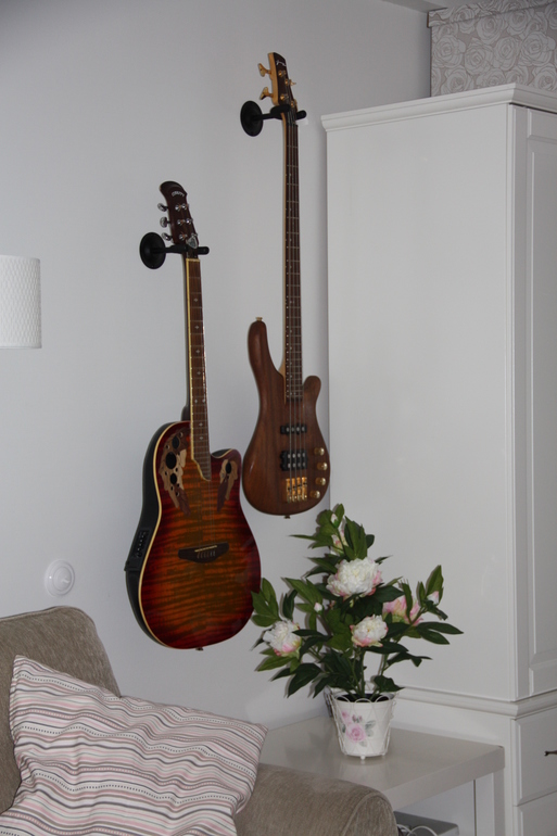 замечательно поселились гитары, хорашая идея абсолютно. Что за крючки?Подходят ли?! У вас соседствуют прям 3 стиля в комнатке)) Нужно что -то сотряпать на стене над диваном.