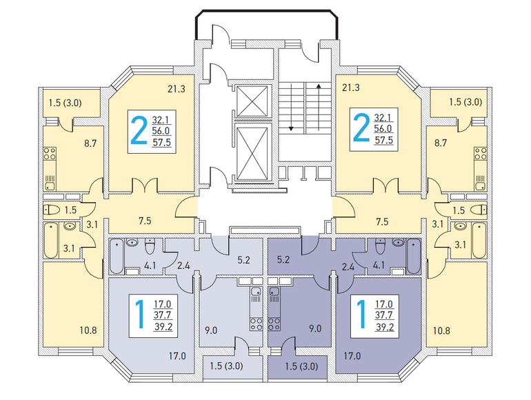 Квартира 2шка справа. Можно и аналогичную зеркальную.