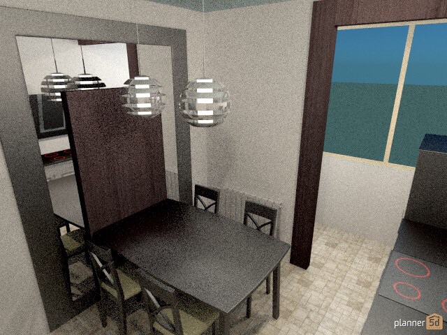 По плану тогда или стол придется покупать очень маленький, или 2 детских стула и 2 взрослых просто не влезают: стулья оказываются впритык к углу холодильника и его невозможно открыть.