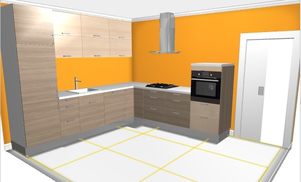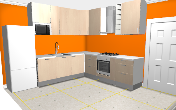 совсем было остановилась на этом варианте,а потом засомневалась...на шкаф с духовкой планируется ТВ поставить,но как то громоздко он смотрится на входе.муж кричит что холодильник встраивать это роскошь(бюджет ограничен)