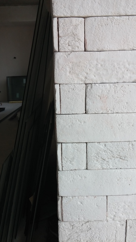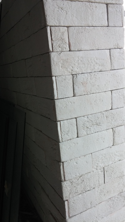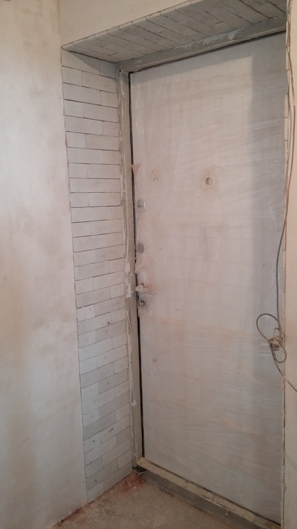 И совет мне нужен, как же без этого. Сделали откос дверной кирпичом, мне не нравится ровный край, как преобразить его? И думаю по низу побольше сделать, чтоб стены не пачкали обувью!