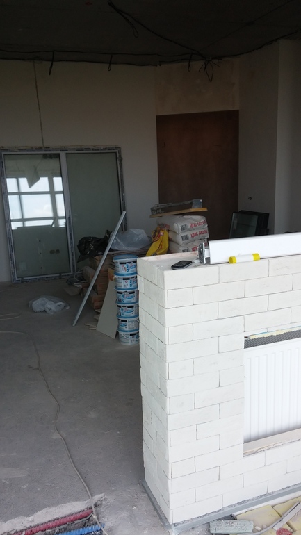 Ого! Вы молодцы! Мы тоже месяц в ремонте..... к сентябрю переехать нужно, а у нас..снесены стены и построены новые, выстроены ниши под гардеробы, поставили входную дверь, провели всю проводку и сантехнические трубы по местам, гидроизоляция в сан узле и стяжка, выровнели стены....сейчас муж делает из гипсокартона стену с нишами в зале....инсталяцию унитаза установил.......закупили ламинат, унитаз и душевой уголок на днях едем покупать плитку ( даже не определились с ней) , обои, кондёр ...и судя по вашим снимкам пора уже брать облицовку кирпичек!