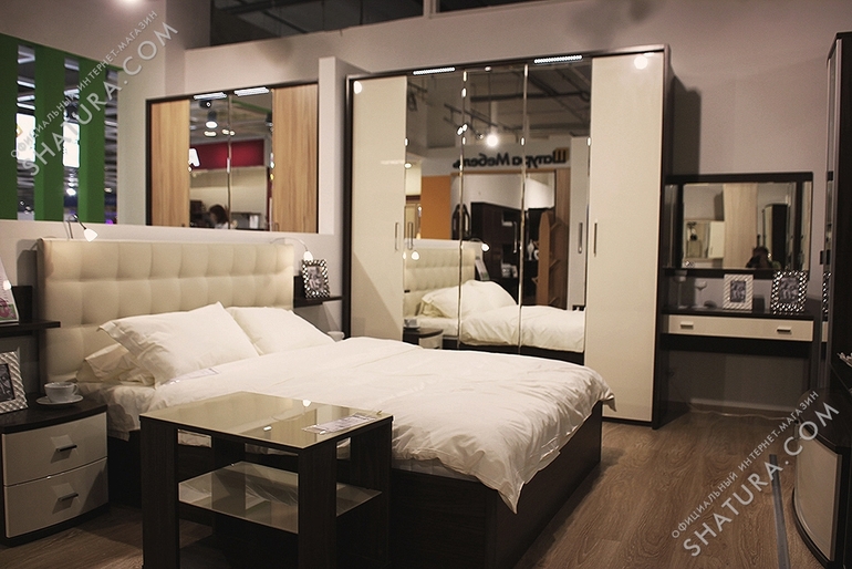 мы купили в Лазурите недавно всю спальню кроме шкафа. Там как раз скидка 50% была. Кровать полностью из кожи, поднимается и там ящики. Кровать, тумба и пуфик из кожи и туалетный столик с зеркалом, плюс доставка и сборка получилось 50000руб. Это недорого за такое качество. Посмотрите на сайте у них. lazurit.ru