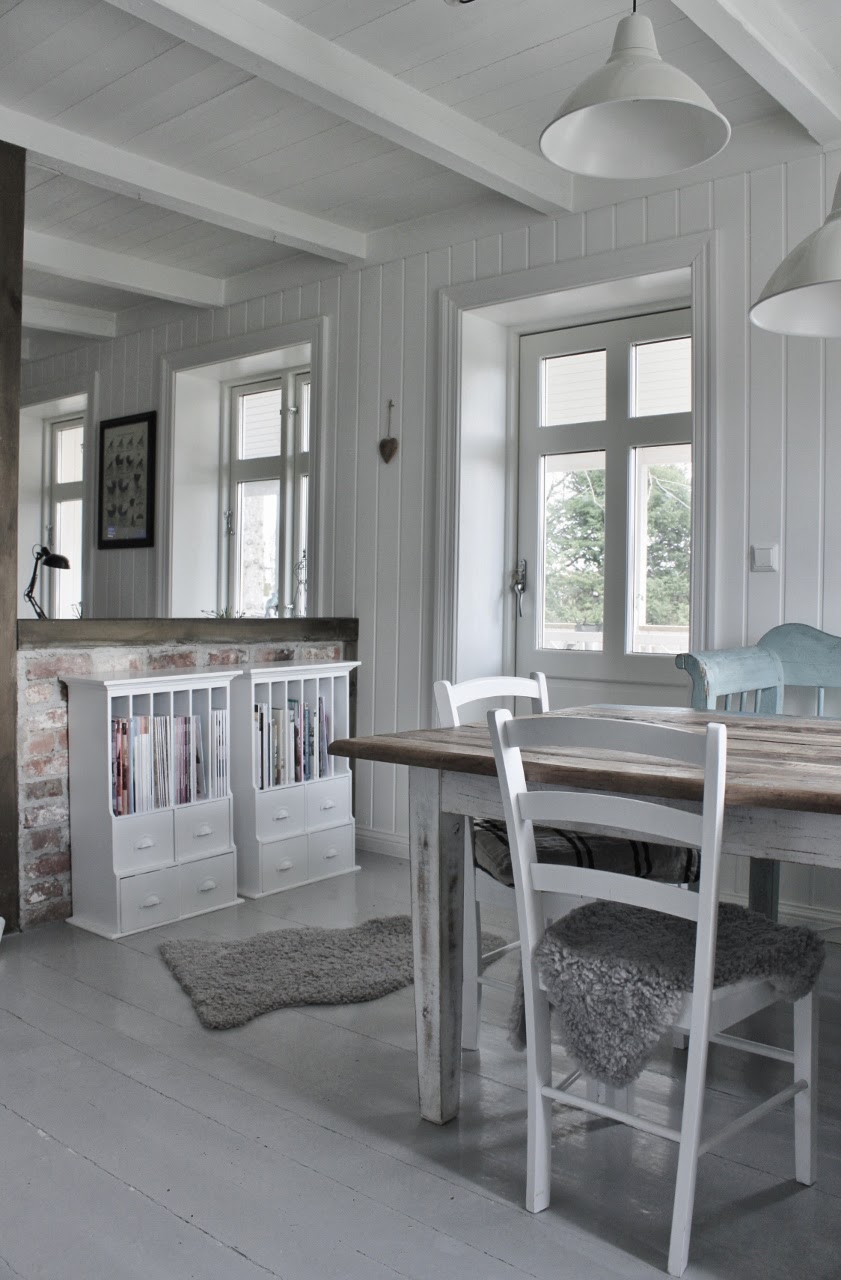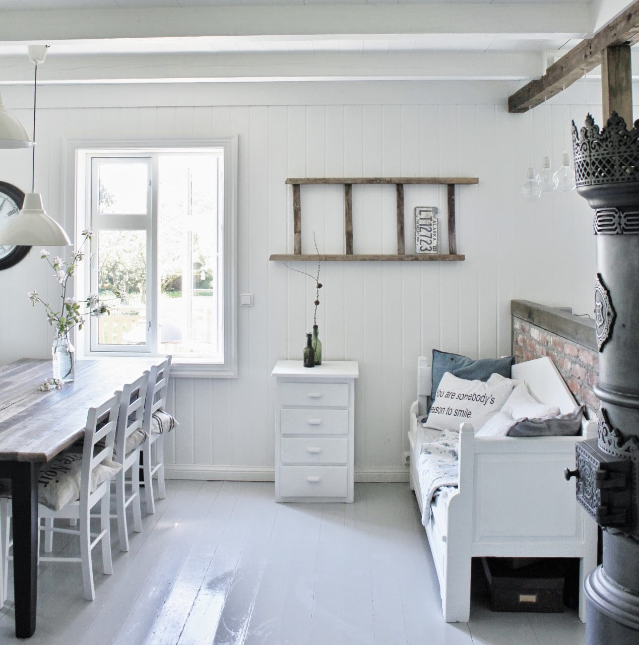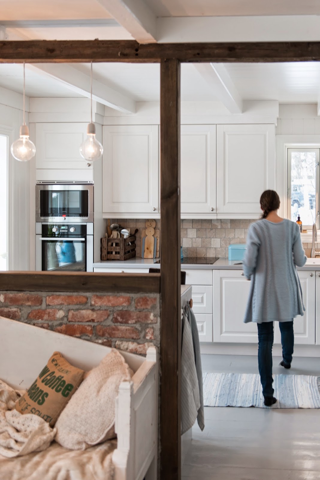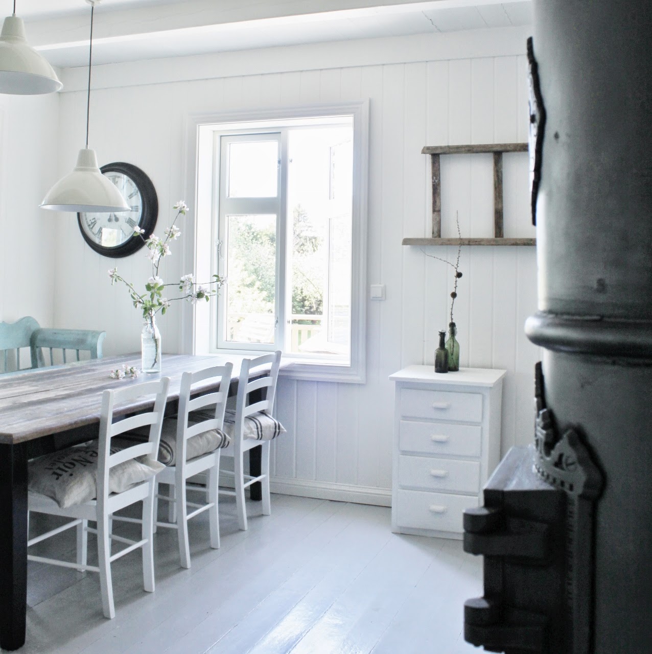 ...в этом норвежском доме. В этом доме, каждый его уголок такой, какой мне и нужен. Все мне тут нравится безоговорочно - много белого, дерево, бирюза, веранда, деревня, локации, дети... Бело-голубое настроение. Хозяйка дома 33-летняя Мария, мама троих. Она декоратор, наверное поэтому, ее дом так гармоничен. К слову, они с мужем сами его восстанавливают, потому, что это старый дом со своей историей . Они пытаются сохранить его дух, сохранить все то, что придает характер этому дому. Когда они купили этот старый дом в нем было много аутентичной утвари и мебели, которую они любовно восстановили и восстанавливают. Очень красивый светлый дом. Заходите, убедитесь сами