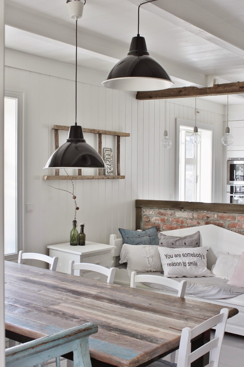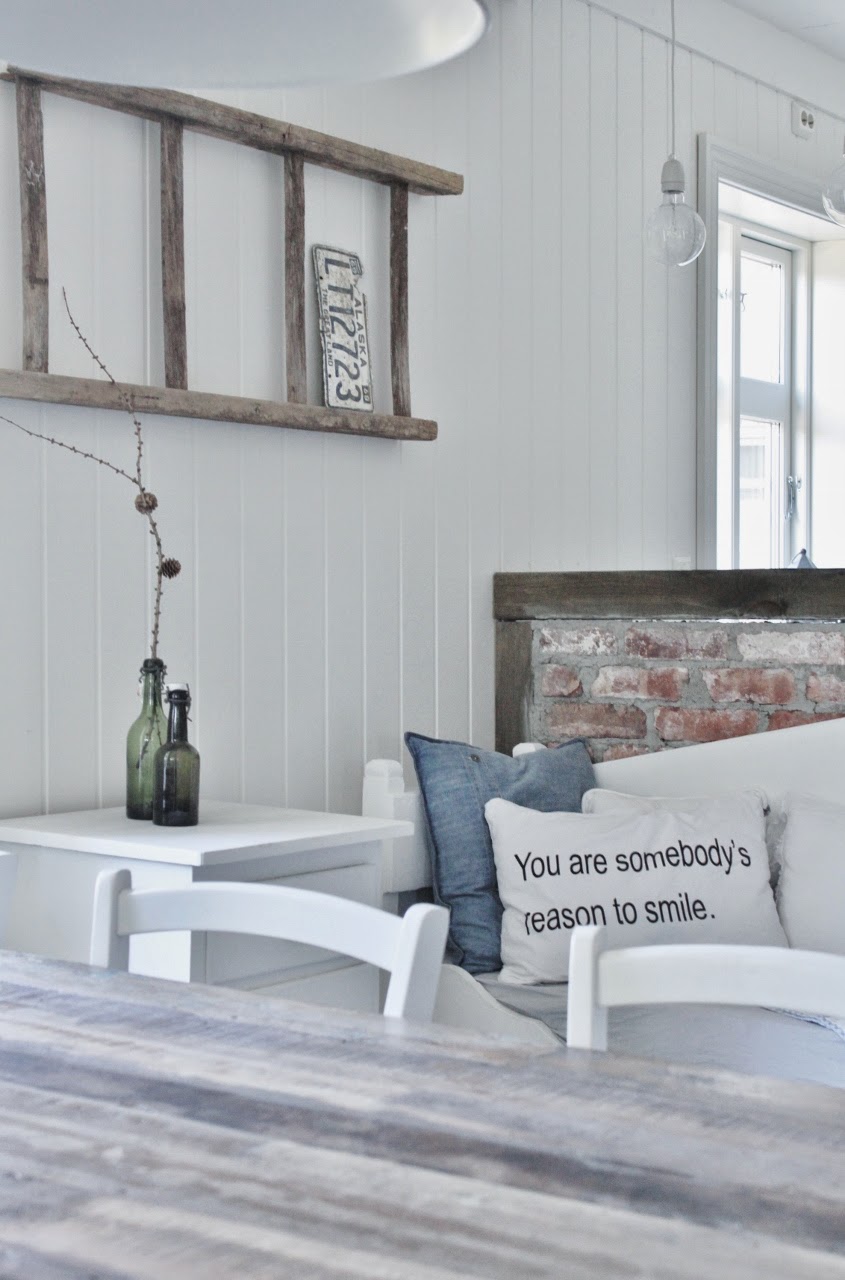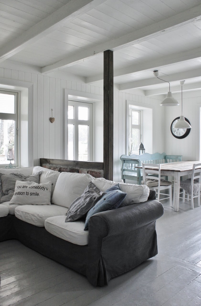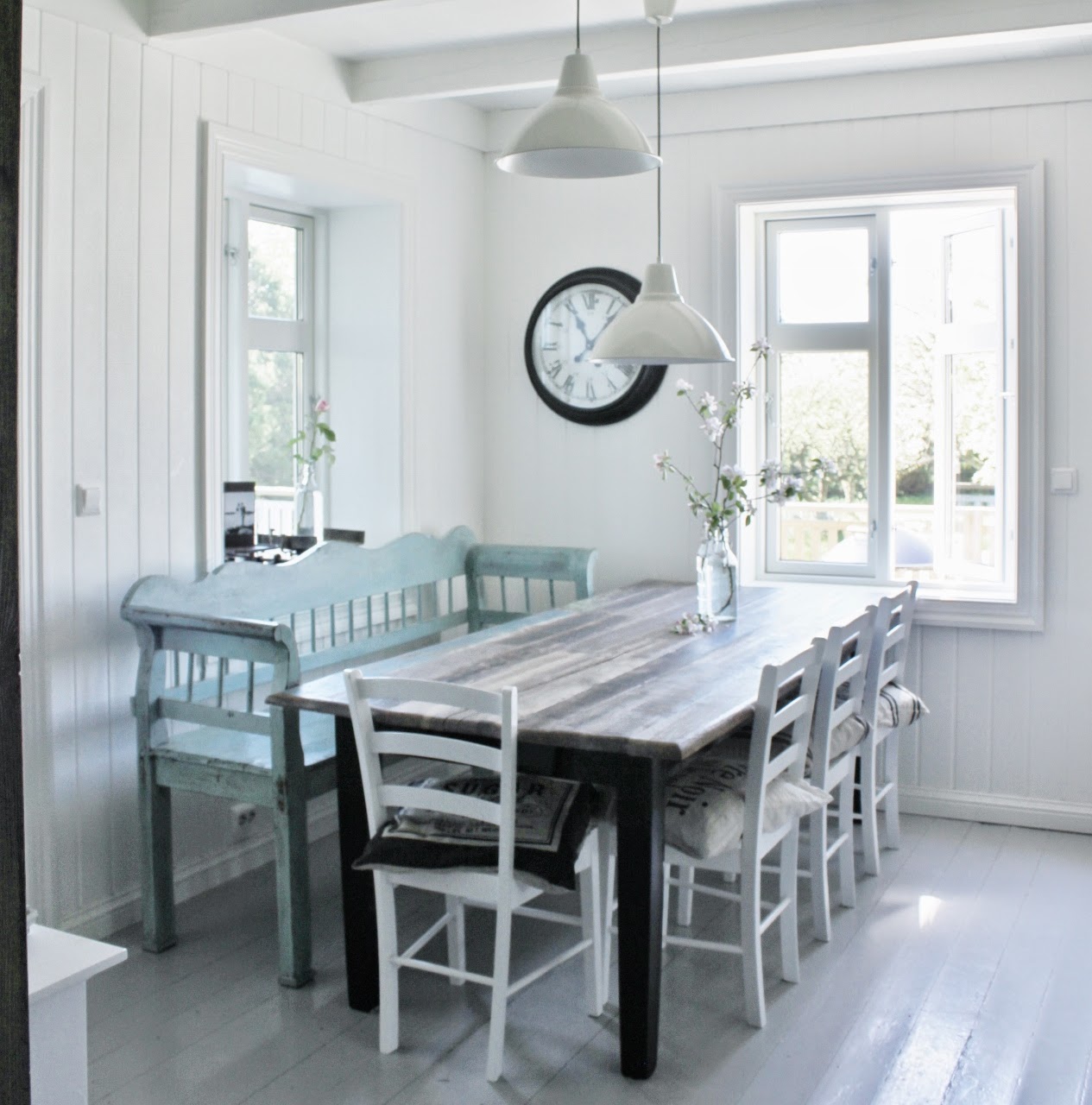 ...в этом норвежском доме. В этом доме, каждый его уголок такой, какой мне и нужен. Все мне тут нравится безоговорочно - много белого, дерево, бирюза, веранда, деревня, локации, дети... Бело-голубое настроение. Хозяйка дома 33-летняя Мария, мама троих. Она декоратор, наверное поэтому, ее дом так гармоничен. К слову, они с мужем сами его восстанавливают, потому, что это старый дом со своей историей . Они пытаются сохранить его дух, сохранить все то, что придает характер этому дому. Когда они купили этот старый дом в нем было много аутентичной утвари и мебели, которую они любовно восстановили и восстанавливают. Очень красивый светлый дом. Заходите, убедитесь сами