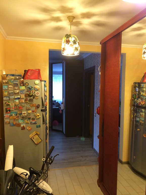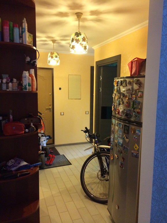 Плитка и паркет приблизительно одного тона только коридор и кухня больше в беж, опять же из-за цвета кухонного гарнитура . Мне резким переход не кажется. Для этого и дверь не стали делать