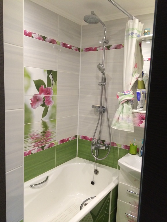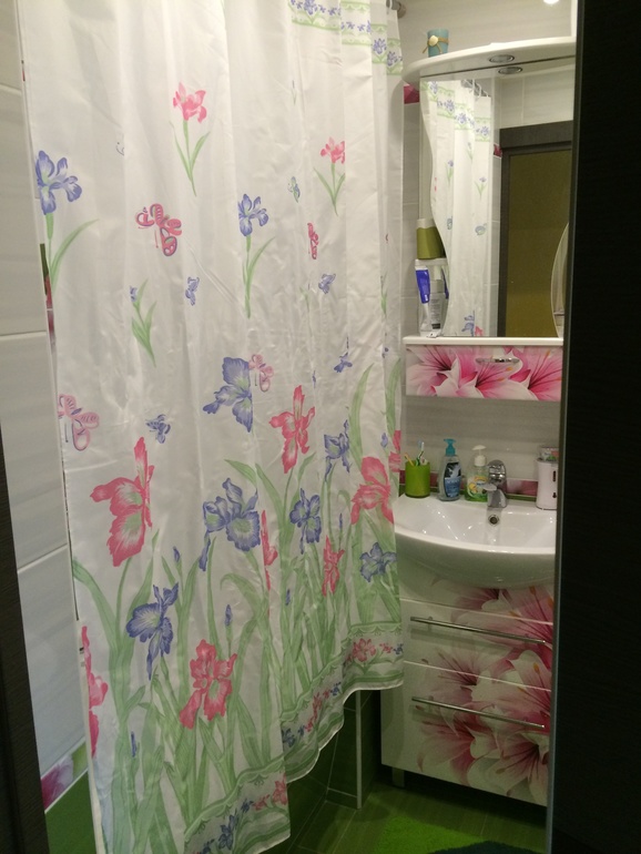 а мне очень понравилось! особенно аэрография — вообще бомба))) не переживайте, все супер) только шторку я бы тоже заменила, на какую-нибудь однотонную (типа как с уточкой, тут на бб такую в нескольких интерьерах видела) или полностью зеленую — под бамбуковую зелень (тоже где-то видела такую, там веточки нарисованы по всей площади). а эта слишком простит и отвлекает внимание от чудесного мойдодыра и кафеля)знаете, я уже вроде кафель для своего СУ подобрала, а тут ваш увидела и задумалась)) завтра мужу покажу, вдруг понравится. а что это за коллекция? еще вопросик, какой у вас душевой гарнитур стоит, какой марки? мы ищем что-то подобное, а попадается все не то...как вам смежный санузел, удобно пользоваться? муж против объединения, а я напротив, об этом задумалась (у нас все в самом разгаре и стена между В и Т снесена, я уже так привыкла что все рядом, мне нравится))