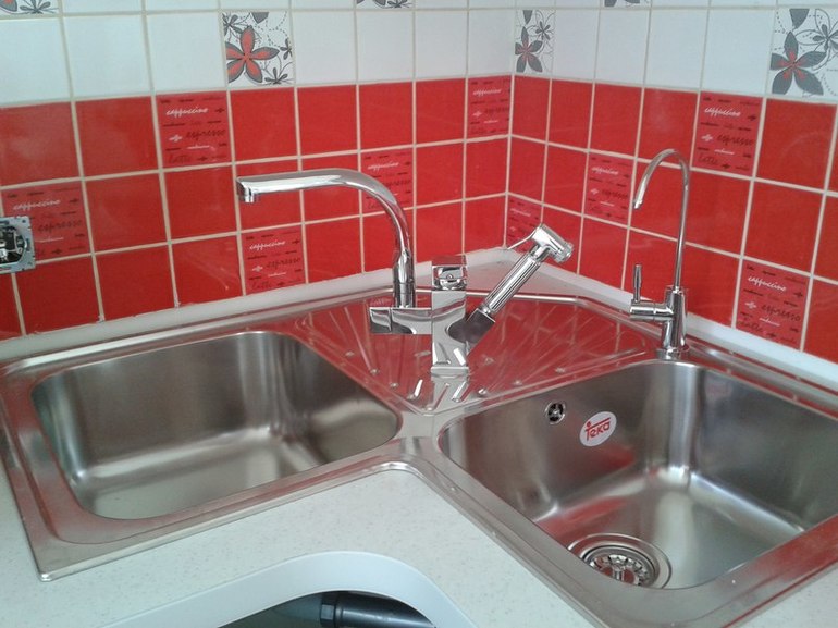 Итак, моя раковина. Когда я начала планировать кухню, то соответственно стала ассматривать и мойки с техникой. И попалась мне на глаза угловая раковина нержавейка Teka Angular 2B. моя мечта- подумала я - но дорого. НО всё-таки кухню подрасчитала именно под эту раковину)))) И вот она)))