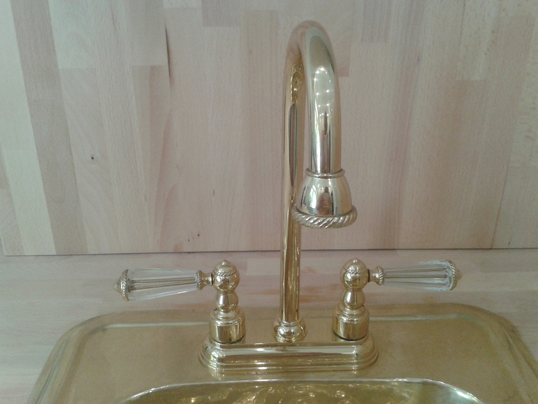 Не удивили )))) Как и любое изделие из меди и латуни )))У меня привычка вытирать на сухо раковину после использования, не люблю засохшие брызги воды!