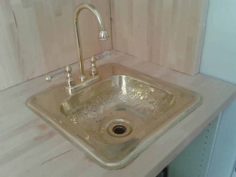 у моей мамы на кухне раковина из латуни...когда покупала -радовалась, теперь плюётся- от воды остаются темные пятна, сильно прилипает жир и грязь, хотя пользуется крайне редко, только если помыть овощи-фрукты