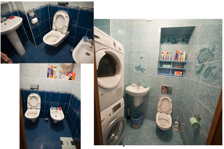 Кроме этого мы полностью заменили сантехнику в ванной и туалете, в туалет убрали сушильную и стиральную машины.