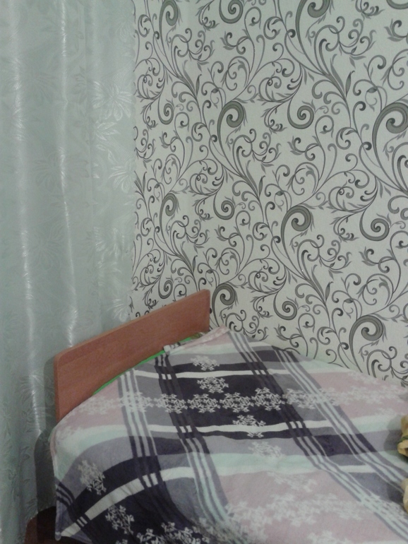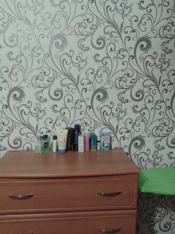 Так как жилье временное, съёмное мебели мало и недорогая. Светлое дерево - камод, кровать дочери наш диван и старый-пристарый шкаф хозяйки.