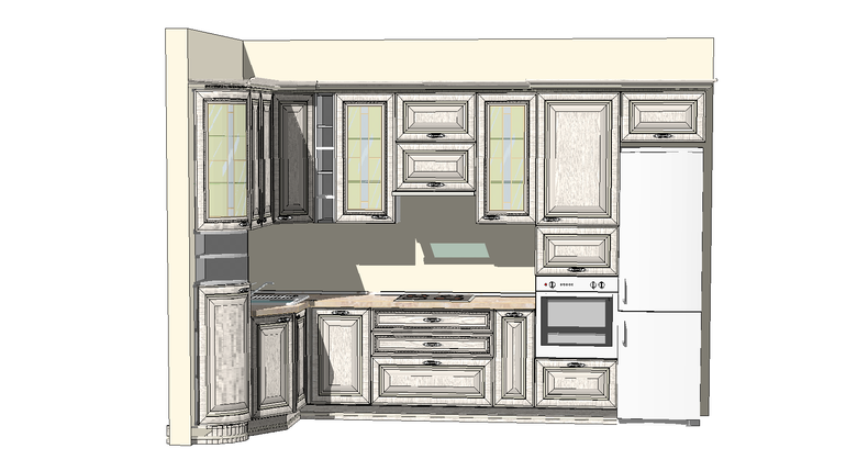 не слышала про пароварку такое,но очень интересная идея! 2,92+холодтльник+10см и 1,87-по короткой стене.по верхним шкафам угловой,под вытяжку,пенал-60,0,остальное варьирует из проекта в проект