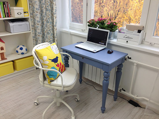 Мое любимое рабочее место. Хотя надо сказать, что столик был бы еще лучше, если бы у него был выдвигающийся ящик.