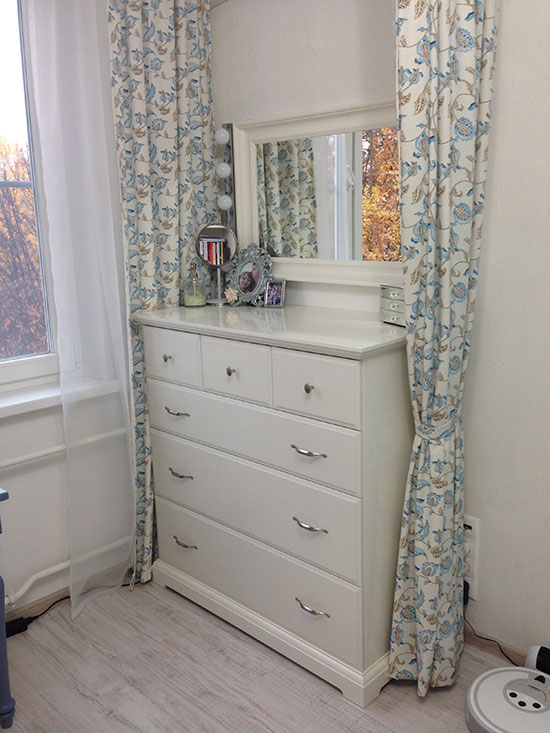 А это мой любимый комод с зеркалом, о них я очень долго мечтала :) А уж вещей в него влезло огромное количество! Кроме того, нижний ящик отдали под детские игрушки и их не приходится относить в детскую - просто закинули и уже все убрано.