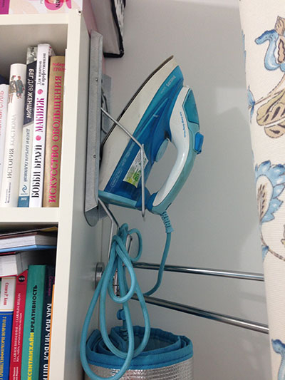 А здесь за занавеской спрятались утюг, гладильная доска, коврик (временно), мини-тренажор и вешалка для одежды. Раньше с одеждой была проблема - мы сваливали ее на стул, сейчас она спрятана и не мозолит глаза :)