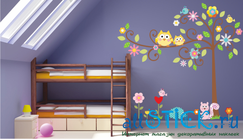 как первая картинка, такие наклейки-деревца и подобные по стилю животные есть на аллиэкспрессе.
