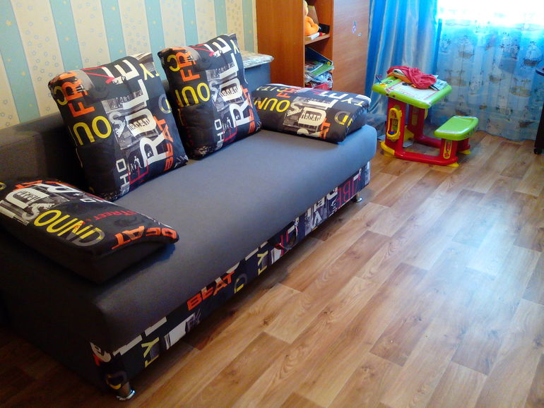 Интерьерное решение детской комнатыВот детская, новый диван. в ближайшем будущем нужен стол письменный и ковёр на пол. шторы будем менять. и вопрос: какого цвета ковёр, шторы и стол лучше сделать? И какой стол? сначала хотела поперёк комнаты у окна типа такого,но теперь и не знаю делать поперёк или нет.