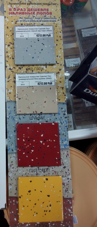 Всё о полах , стенах, потолках и материалах для нихСегодня шаталась по стройрынку. Наткнулась на образцы "сделай пол". Кто-нибудь опробовал эту марку наливного пола? Или вообще наливные полы? Какие плюсы/минусы? Можно ли их с тёплым полом совмещать?