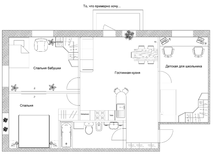 Дорогие мой девочки, мы недавно купили квартиру 3-х комнатную "убитую", так сказать. Но ремонт сможем начать не раньше следующего лета. Но меня прям разбирает от желания "поделать" ремонт и все "попланировать". Хотелось бы спросить у вас совета - насколько сложно сделать перепланировку и потом есть ли возможность ее узаконить (хотя я думаю жить мы там будем долго...)? И вообще как вам такая идея перепланировки? Жить будет семья: муж, жена, ребенок 7 лет, и старенькая бабушка, возможно когда-нибудь еще один ребенок...