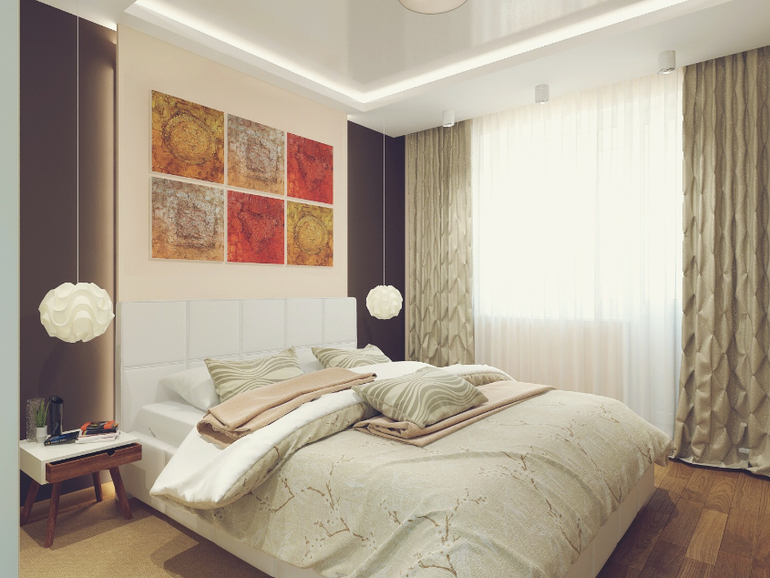Спальня очень нейтральная и спокойная. До конца еще не решила, делать именно такой или что-то поменять.