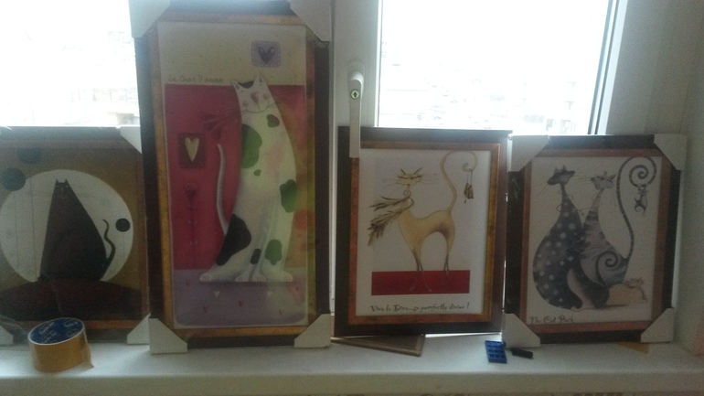А сейчас - чисто поржать - купила картины (типа) - для стены, которая розовая - картины с котами! И так - общий вид -