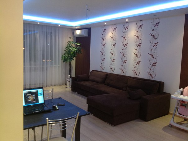 Анна здравствуйте!Увидила Ваш пост с занавесками ,очень понравились цвета,решила посмотреть сам ремонт,здорово у Вас получилось,скажите а кухня у Вас получается в коридор вынесена?Если да то не подскажите сколько метров была сама гостинная комната,до того как объединили ее с коридором?