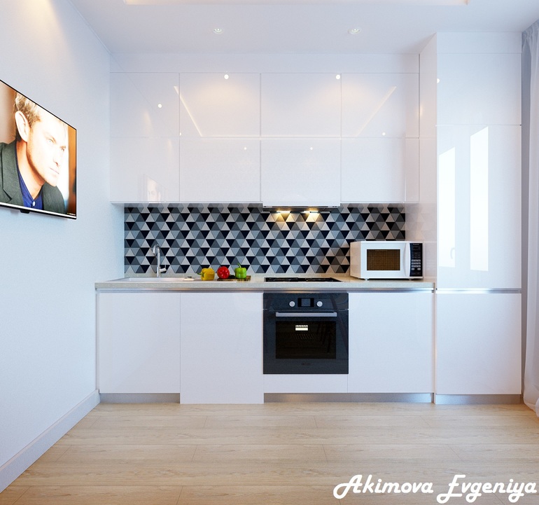 По дизайну все по моему вкусу сделано :) Но вот микроволновка сразу бросилась в глаза. Заказчики не хотят встроенную сделать? А то места для готовки крааааайне мало. Я 7 лет жила с таким пространством для готовки, но так и не привыкла.