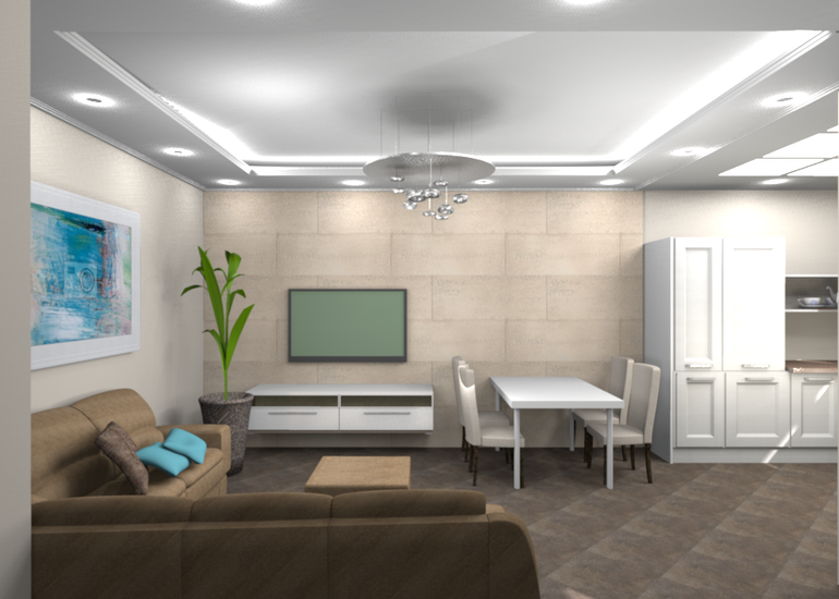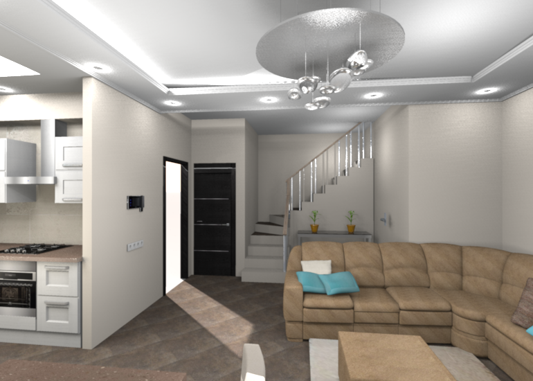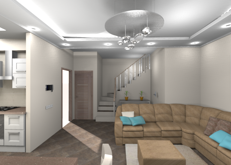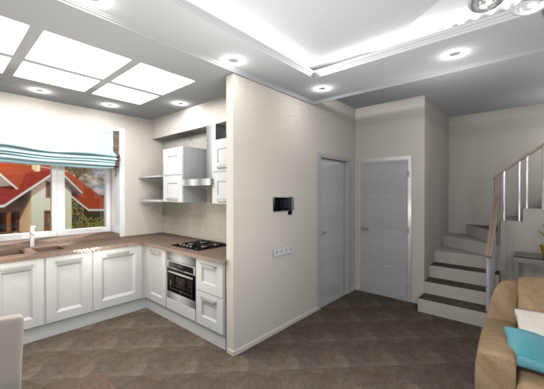 Надеюсь, подогрев будет :))) У дочки в квартире плитка вот так же на всю кухню и гостиную (совмещено) — пол просто ледяной, несмотря на подогрев (видно, что-то с ним не то), мы к ним в гости со своими толстыми носками ходим :) Ну, это я так, лирическое отступление :) Ну вот на самом деле я люблю и светлые двери, но тут мне кажется, для контраста, лучше темные. Они хорошо оживят достаточно ровный фон всего помещения. Да и с голубыми элементами хорош будет :) И вообще темные массивные двери выглядят так.. богато, в хорошем смысле этого слова :)