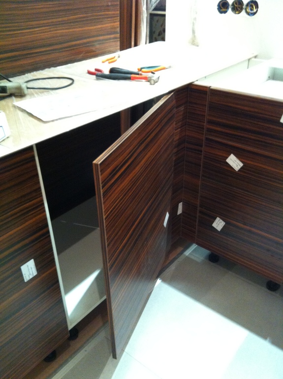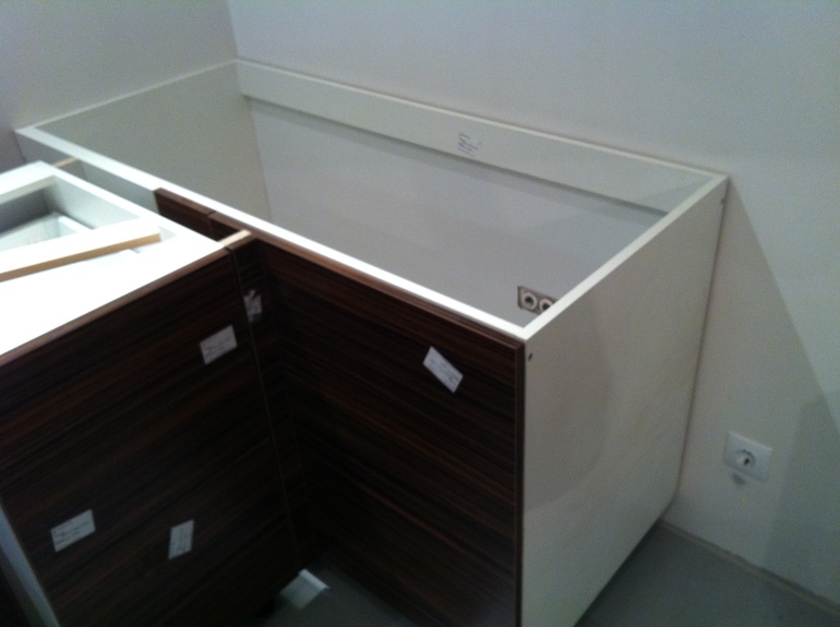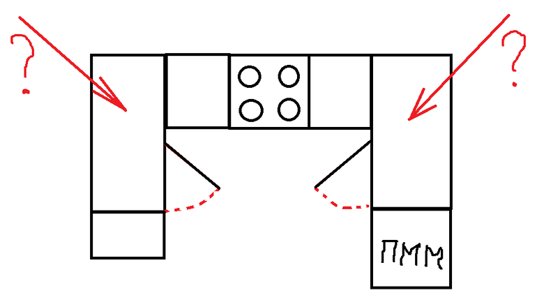 Ну в левом получится у вас будет полка которая будет выезжать что бы что то достать (из дальнего угла ) . А в правом у меня нет полки так как раковина и мусорное ведро не встали бы одновременно . И еще трубы слива от посудомойки и раковины Фото не могу с телефона в комментари загрузить
