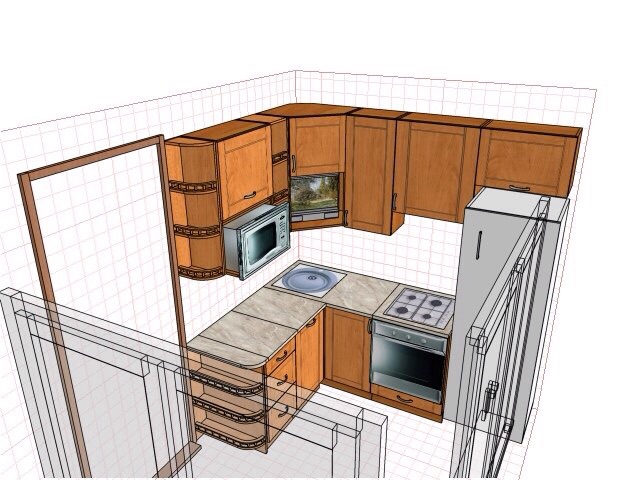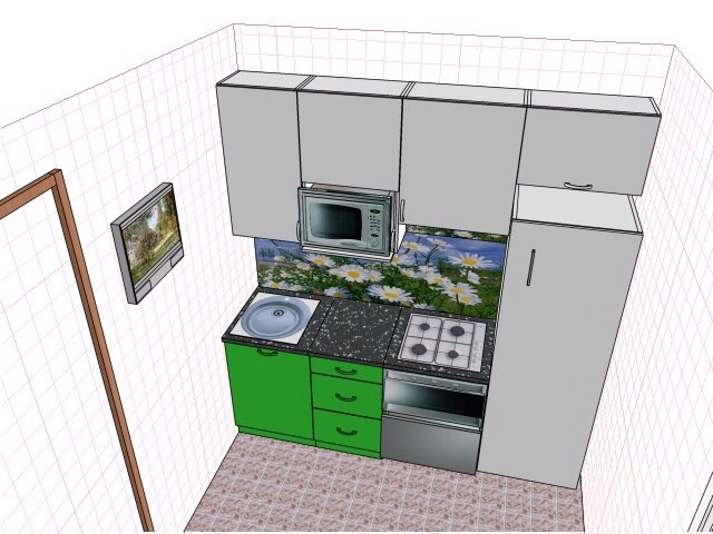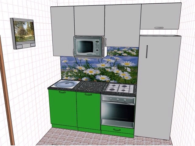 Интерьерное решение кухниХочу с вами посоветоваться, кухня у нас не большая ( по одной стене 2.24 по другой 1,57 до двери).угловая не очень нравится ( может ошибаюсь?), кажется что кухонька наша превратится совсем в пяточек. Поэтому очень хочется все уместить на одной стенке (недостатком шкафчиков не страдаю, перед кухней есть большущая кладовка)