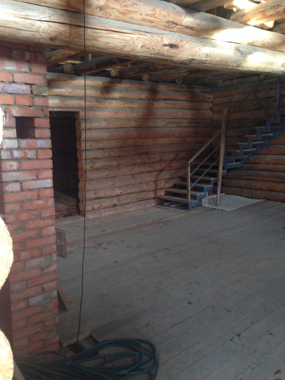 а теперь постараюсь объяснить... фото сделано от входной двери.. прямо выход на одну из террас..рядом с ней вход в комнату.. слева вход в одну большую комнату... и кирпичная стена(она идет из цокольного этажа, внизу в ней сделан комин)....окон нет пока ни одного... выхода на вторую террасу тоже нет...
