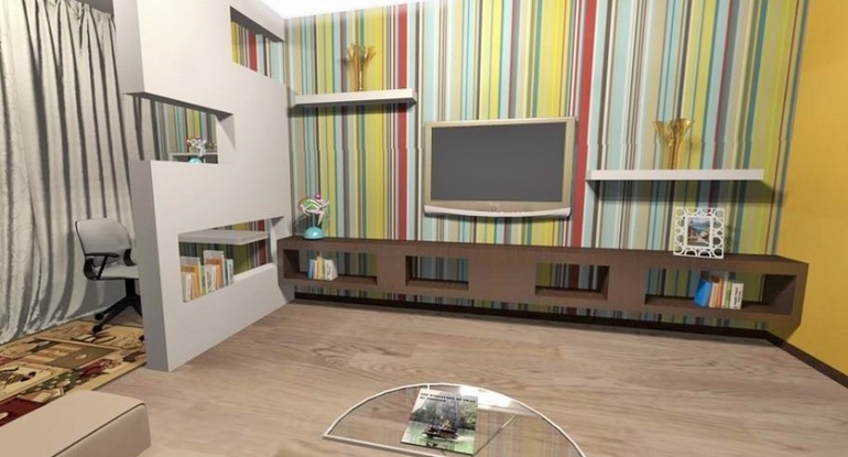 Завершен проект по визуализации гостиной для молодой пары с обязательным условием зонирования. По желанию Заказчика варианты должны быть разными. В первом варианте возле окна разместился мини-кабинет для мужа, а во втором - детская для планируемого малыша.