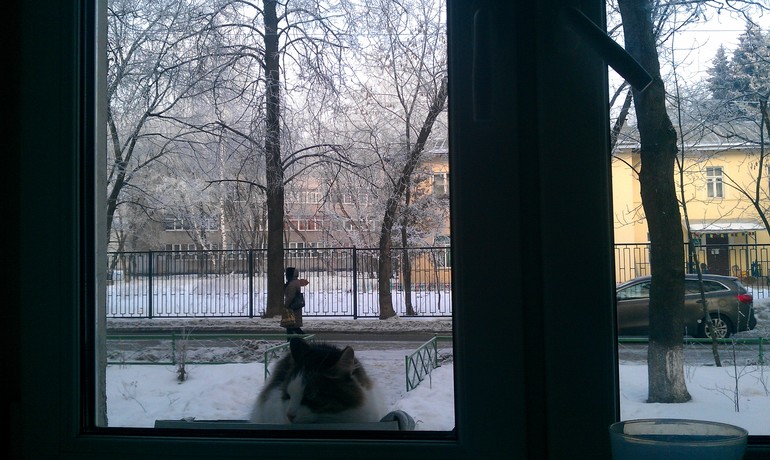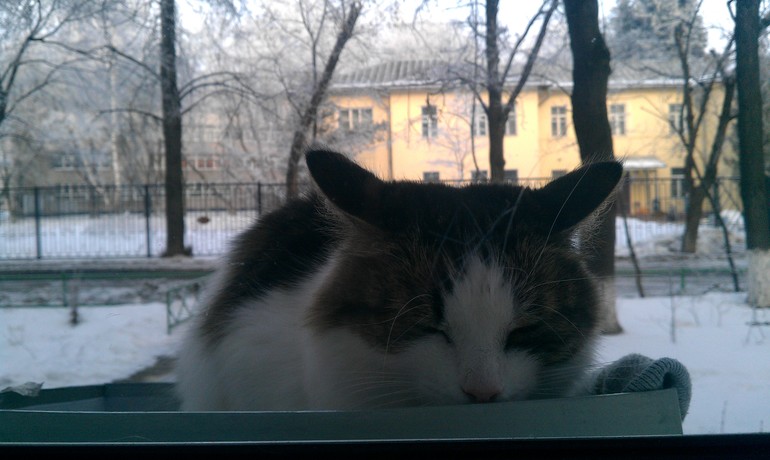 Наш морозоустойчивый котейка любит гулять и следить за нами ))))