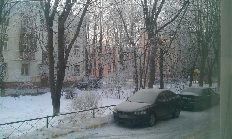 А у нас вид обычный, только иногда какую-то движуху фоткаю. Вот машины эвакуируют, чтобы снег расчистить