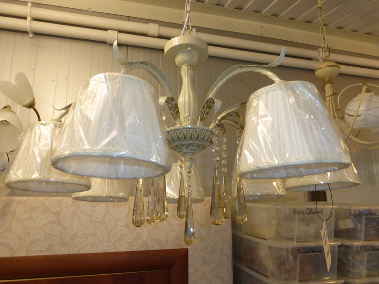 люстра Fa*vorite 1165 есть на 4 лампочки диаметр 40 см - 13470рублей, есть на 6 ламп диаметр 60 см - 23860р. Цены ниже, чем в интернет магазинах на 20%.