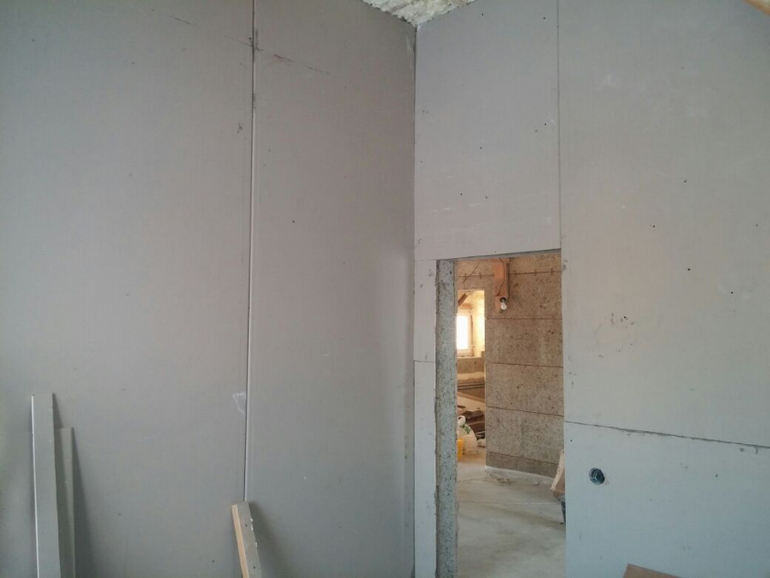 А чего перегородки из гипсокартона? Может лучше штукатурные было бы сделать? И капитальность и не было бы этого картонного стука. А то через такую перегородку в Голивудских фильмах выходят без двери)). А про монтажную пену — очень правильное решение. Чтоб не продувало. Все тепло выходит на верх, поэтому важна герметизация. Под крышей поверх теплоизоляции, разумеется, у вас есть вентиляционная 5 сантиметровая прослойка? И если не секрет, то сколько обошелся 1 кв.м этого утеплителя и какая толщина слоя? А то мы сделали 20 см.минваты и 3 см пенополистирола + фольгированный пеноплекс. Интересно, какая разница. Наверно, сейчас бы сделали напыление.
